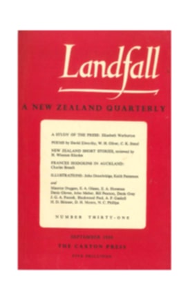 I had been knocking on Landfall’s door throughout the 1960s to no avail. I had had a number of short stories published in the little magazines of the time – Mate, Arena and even Te Ao Hou – but the drawbridge round Landfall was firmly pulled up. Why did I bother knocking? I was a housewife from the provinces, and Landfall was the precinct of clever men: Wedde, Sargeson, Baxter, Glover. Just often enough I would see the names of Fleur Adcock, Ruth Dallas or Anne Spivey, and, to the eternal credit of editor Charles Brasch, that of Janet Frame, to give me hope that one day I would make it. I am not sure, but I think Elizabeth Smither had a poem accepted by Brasch.