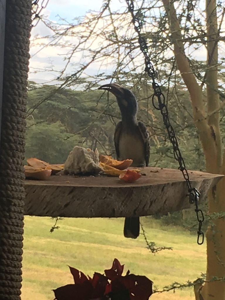 The verandah is a distracting place to sit, and I don’t notice that the battery on my recording device has died. I suspect it’s been affected by my reluctant psyche – I’ve put this interview off for three days, and we’re only here for six. The first two we spent on safari at a nature conservancy where we saw the big five: elephant, lion, water buffalo, rhinoceros and leopard. Paul the driver was our safari guide. His van may be no match for the matatus but its roof pops up, and he’s been driving around this conservancy for ten years. Other guides radioed him to find out where the animals were.