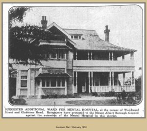 It was built in 1908 by staff and patients of Auckland Mental Hospital at Avondale for the superintendent and his family, converted in the late 1920s as a ward for voluntary women patients. The house is the site of groundbreaking work in modern psychiatry and psychology in New Zealand, and for four years in the 1930s was the refuge of one of our most important writers, Robin Hyde (Iris Wilkinson).