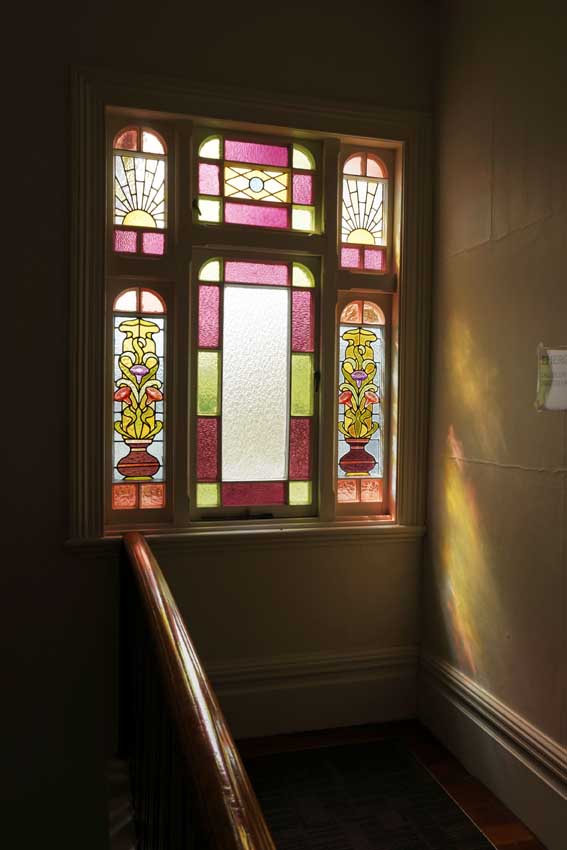 Above right: interior shot by Haru Sameshima, of the stained glass window Robin Hyde would have known.